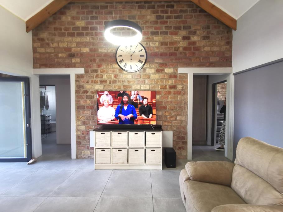 This home boasts unique feature walls throughout, creating a warm and comforting ambiance. It is equipped with air conditioning units, an intercom system, and a camera system for added security. Double garage. The spacious front and rear gardens are completely enclosed, providing both privacy and ample space for outdoor activities. Additionally, the home includes a battery backup system to ensure uninterrupted functionality even during Eskom power outages.