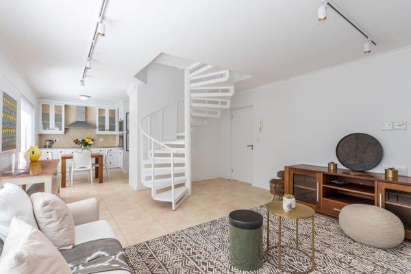 This sophisticated and clean line apartment offers two bedrooms and two bathrooms up a spiral staircase. Lounge and dining area are on a different floor which offers privacy. There is only one secure parking bay. A new couch will be provided for this lease agreement