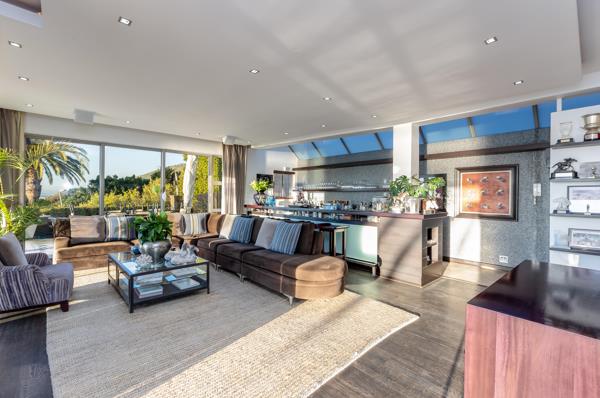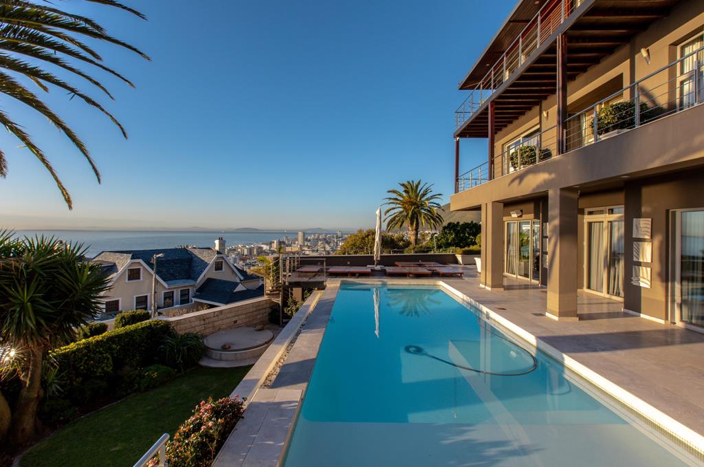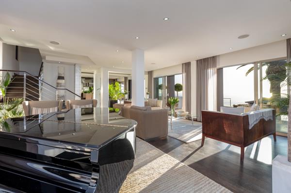 The first level boasts indoor and outdoor entertainment areas with seamless connections to lush gardens and the ocean. Enjoy the swimming pool and loungers under the sunny African skies.