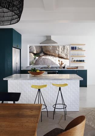 The open-plan kitchen, lounge and dining room have a warm and luminous ambience mirroring the outside views and making the most of the abundant natural light.