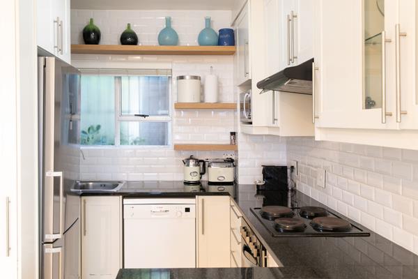 Fully equipped kitchen includes a fridgefreezer, ovenstove, dishwasher, microwave, toaster, kettle, Nespresso coffee machine, crockery, cutlery and glassware.