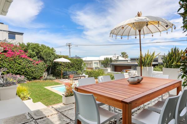 This fully furnished family home in Camps Bay is in pristine condition, featuring calm, neutral tones throughout and a French Provencal style. The open-plan kitchen, dining room, and lounge open seamlessly onto a patio with a small garden and swimming pool, perfect for outdoor entertaining. The kitchen is equipped with a dishwasher, washing machine, and dryer, and the home offers fabulous views of both the mountains and the sea.