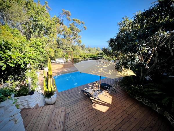 Step into this exclusive, fully furnished private retreat surrounded by trees and your own stream running through the garden. Secluded with stunning ocean views, yet close enough to all the amenities Camps Bay has to offer, the beach, restaurants, shops and bars, tennis courts, squash and padel and all the walks and hikes.