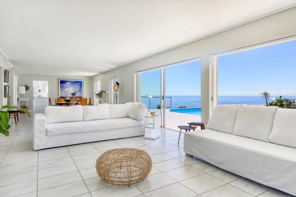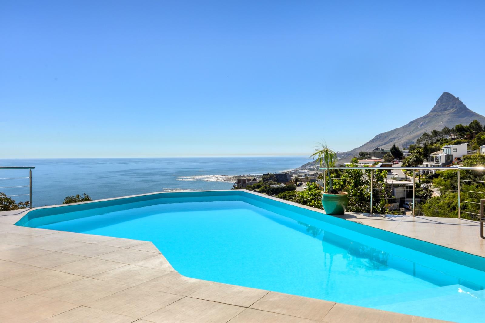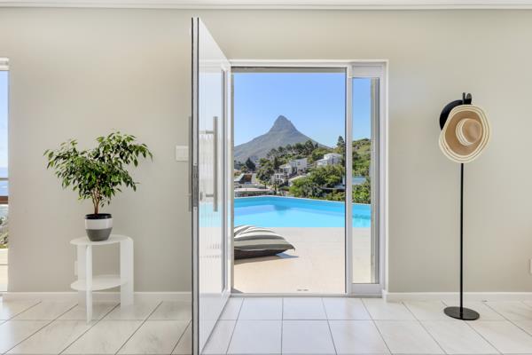 This gorgeous 5-bedroom villa has breathtaking views of Camps Bay and the surrounding mountains from the living and outdoor spaces.