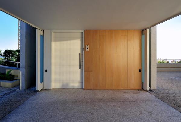 The Garage and Entrance level is accessed via a gentle cascade of steps or the vehicle ramp. From there one can proceed down using the lift which reveals glimpses of views over Clifton, or the timber clad stairs, which guides the visitor down while viewing part of the client's extensive art collection.