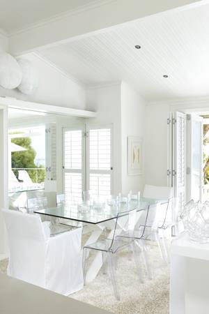 The living area consists of a large open-plan kitchen / lounge / dining room, opening on to the pool deck directly above the beach. The dining room seats 8 people, with casual and formal dinner services to suit a variety of dining requirements. The living area is equipped with TV, DVD and DSTV Now, with a sound system that is connected to indoor and outdoor speakers. There is fibre internet throughout the Bungalow. Access to Netflix, Show Max and YouTube. Office facilities such as Printer, Copier and Scanner all connected via WIFI. The Pool deck has a bar area, outdoor dining area at the bar counter, pool and braai, as well as lounging facilities under palm trees.