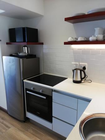 Furnished with queen-size bed, bedside pedestals, couch, TV, deskdining table, a fridge, a full oven and a hob. Bathroom with walk-in shower. Lovely covered balcony. Perfect for a single professional or couple. The building is fiber-ready and electricity for tenants account. No washing machine no parking and no pets. Tenant to provide their own bedding, linen and towels.