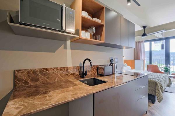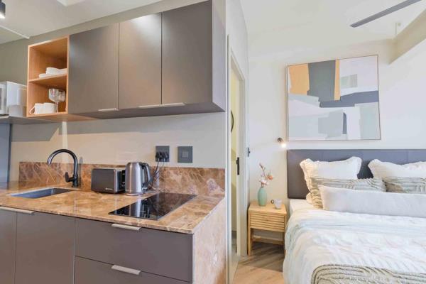 No Deposit! No Lease! No Credit Check! Luxury. Splendor. Opulence. Your trendy and convenient home boasting spectacular ocean and harbour views of the Mother City! This Brand New Furnished Large Studio Apartment with a balcony is perfect for destressing after a long day! Featuring an open-plan living and sleeping area with an en-suite leading to a modern bathroom with shower. Furnished with a queen bed, headboard, side table, closet, fridge, microwave, with provision for either a washing machine or a dishwasher. Ceiling fan included. Time to level up your living experience!