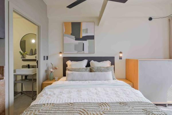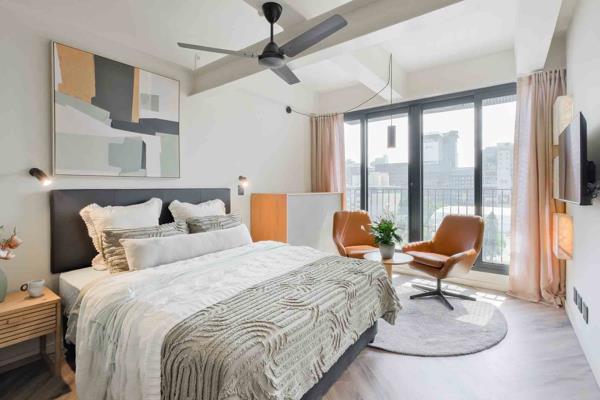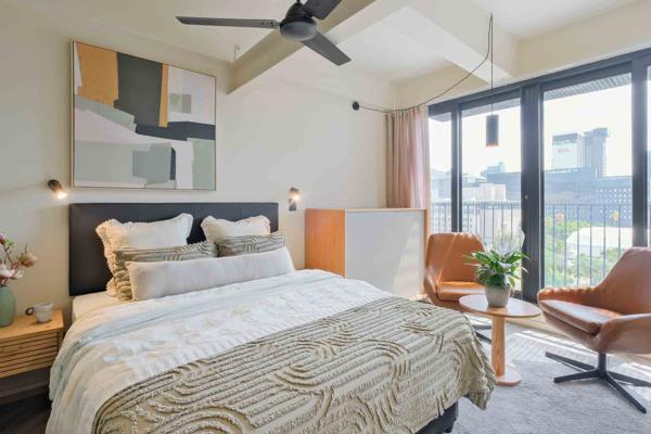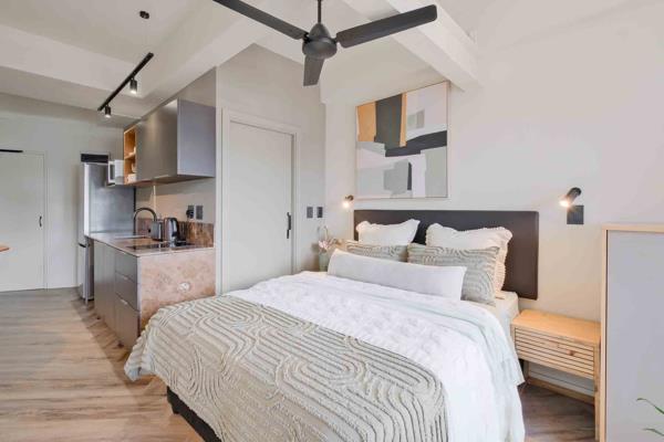 This Studio XL Balcony is perfect for one HOMii needing a trendy and convenient home in the Mother City! Featuring a separate living and sleeping area with en-suite that is kitted with a queen bed, headboard and closet. The kitchen is kitted with a fridge and microwave.