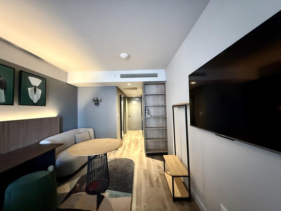 This stylish, furnished 25 sqm studio apartments at The Rockefeller in Cape Towns vibrant Foreshore district offer contemporary city living with an open-plan layout, a fitted kitchen, and a neat bathroom.