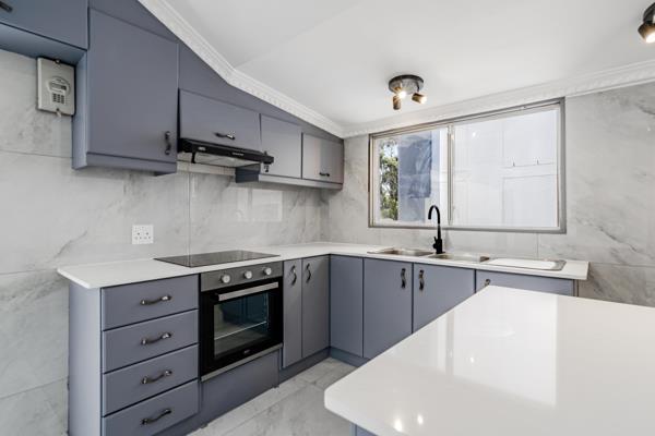 Both bedrooms are generously sized and include built-in cupboards, while the modern bathroom showcases elegant fittings and finishes. The renovation has been completed with attention to detail, offering a fresh, move-in-ready space that balances function and design.