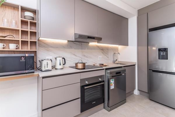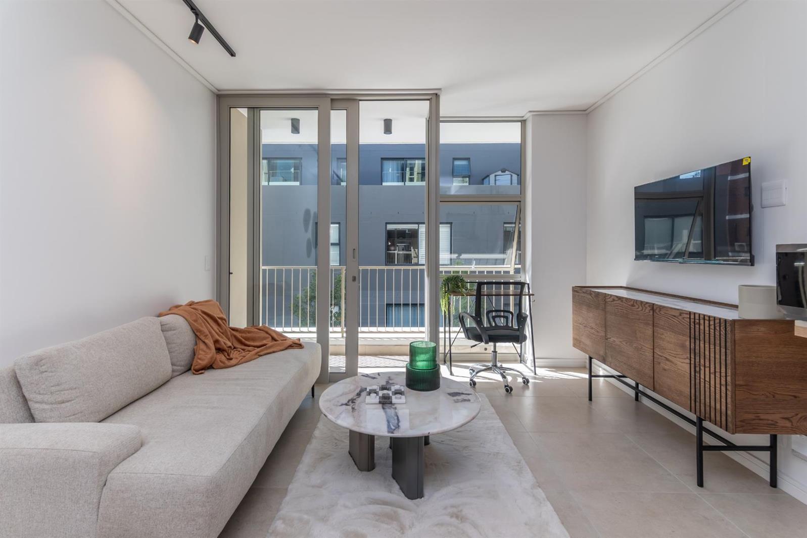 This modern 1-bedroom apartment in the vibrant neighborhood of Green Point, Cape Town, offers the perfect blend of comfort and security. With an en-suite bathroom featuring contemporary finishes, the apartment is designed for both functionality and style. The spacious bedroom is furnished with a queen bed and built-in cupboards, providing ample storage for your belongings.