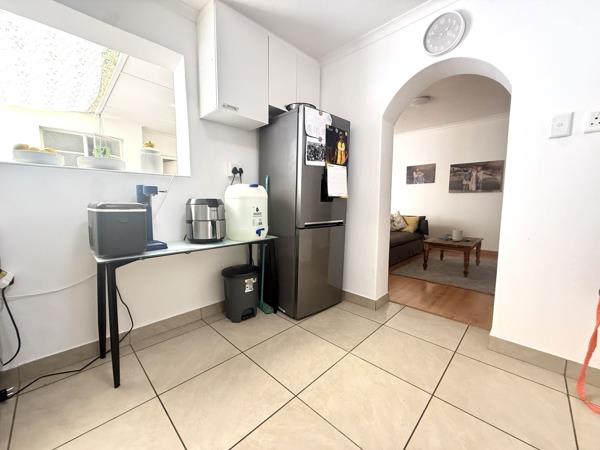 On offer are 3 spacious bedrooms all with good cupboard space. The flooring in the bedrooms are laminate with a combination of tiles in the living area and kitchen. The kitchen offers ample storage with built-in cupboards, as well as an integrated gas stove. Full bathroom with bath tub and separate shower .