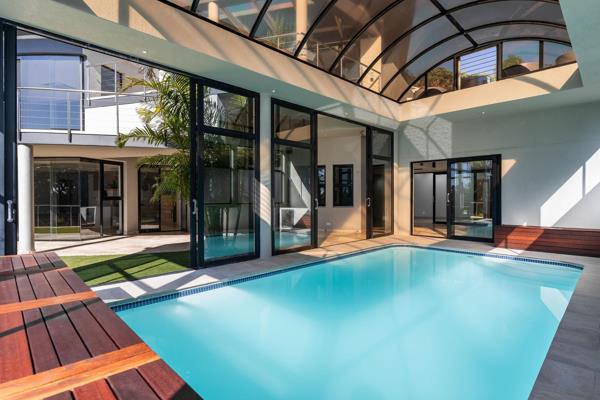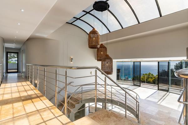 Set within beautifully landscaped indigenous gardens, it offers complete privacy, sweeping sea and mountain views, and the benefit of being virtually off-grid with solar, borehole water, and generator backup.