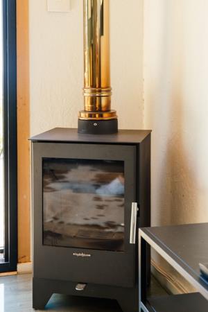 The open-plan living area flows onto a private deck through large sliding doors, creating a light, relaxed space, complete with a wood burning fireplace. A well-equipped kitchenette, comfortable lounge and dining nook make everyday living simple and functional.