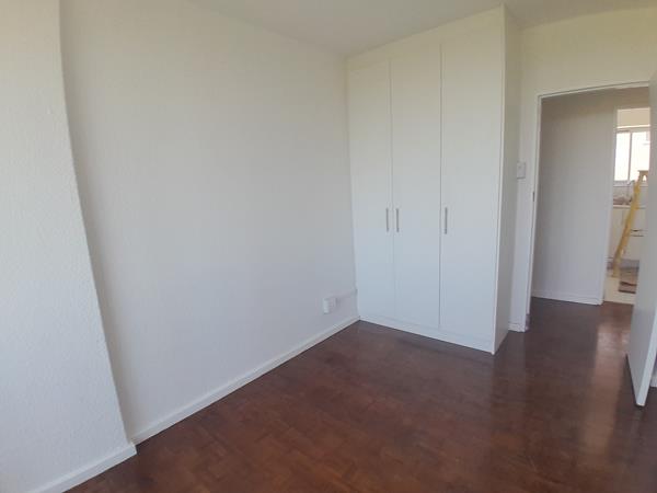 Loungedining room with enclosed balcony. Second smaller bedroom with built in cupboards and larger main bedroom also with built in cupboards. Bathroom with large walk in shower. Kitchen with oven and place for a washing machine or dishwasher. One secure parking bay behind the gate.