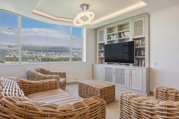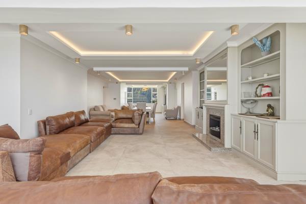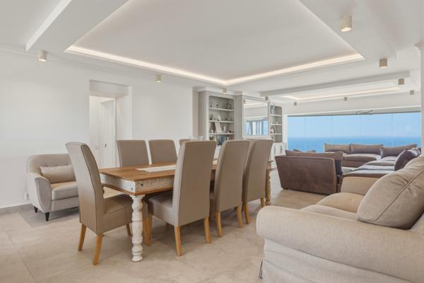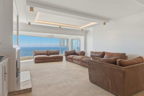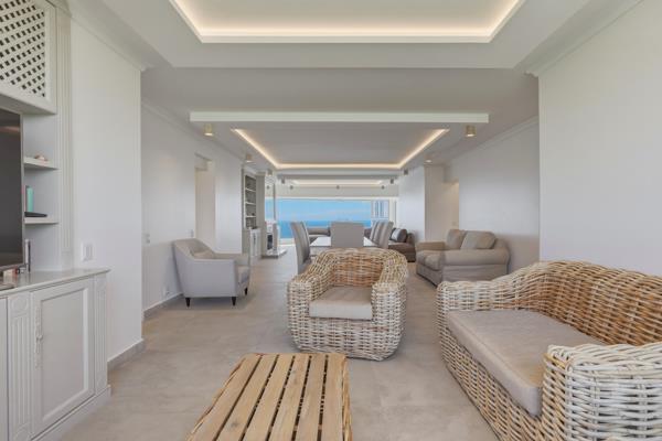 Spanning 212 sqm, the apartment has been completely renovated to a high standard and features a spacious open-plan lounge, TV, and dining area, filled with natural light and framed by uninterrupted sea views. The separate kitchen overlooks the golf course and Table Mountain and includes an island, scullery and pantry. Every window in the apartment offers a unique outlook. The apartment is fully retiled and fitted with brand-new bathrooms, modern light fittings, and a dropped ceiling in the lounge area.