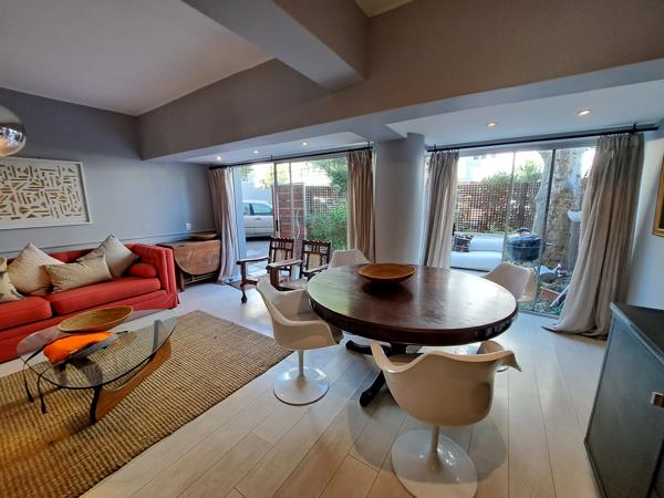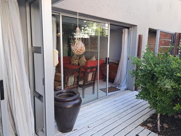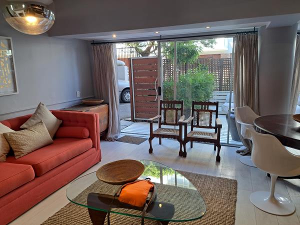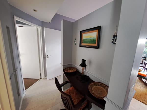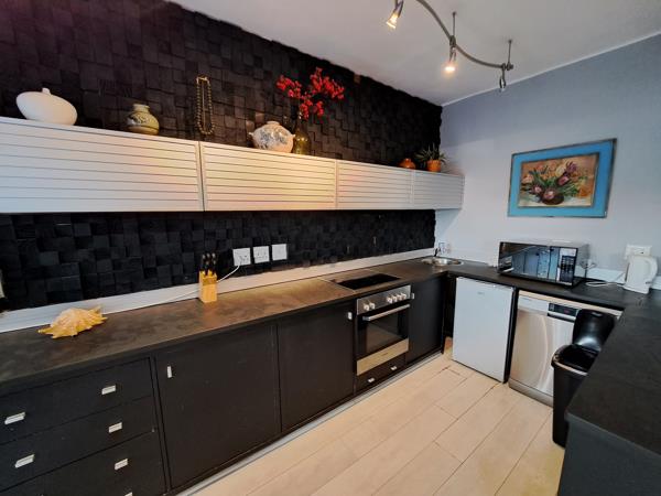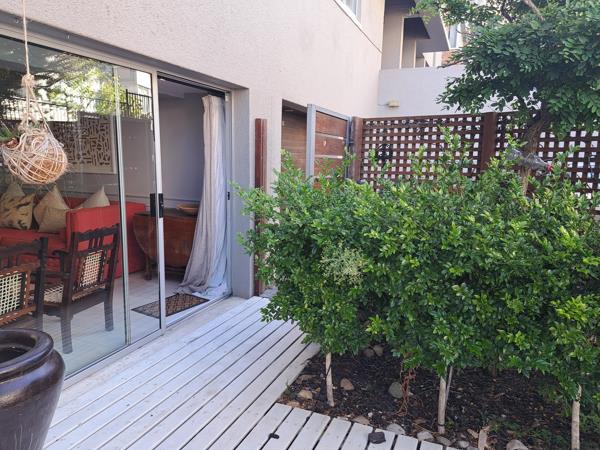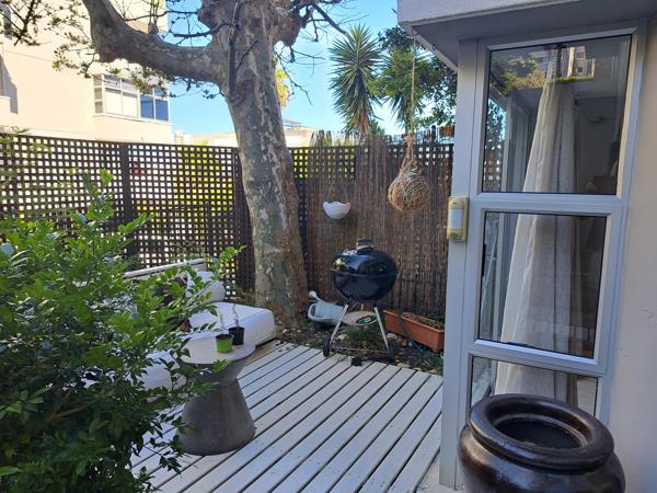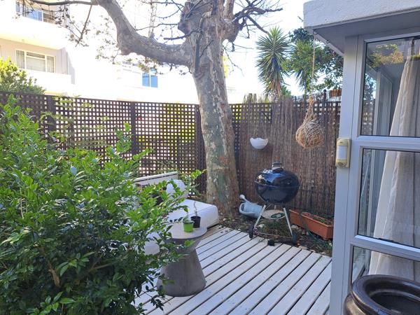 Master bedroom en suite. Open plan loungekitchen area with access to a small garden. Fully equipped kitchen with a built in ovenhob, bar fridge and dishwasher. There is a standard size fridge, washing machine and tumble dry as well. Vinyl floors were installed throughout the entire apartment last year.