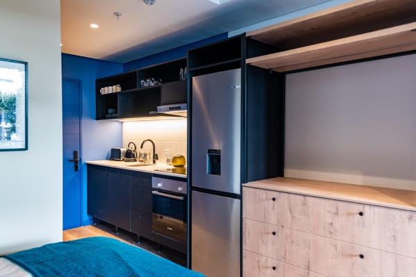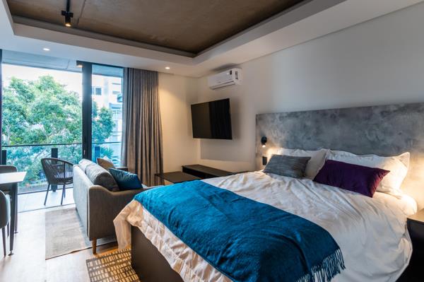 This furnished apartment itself offers studio living, an open-plan kitchenliving room. A bathroom with shower, basin and loo. Balcony with seating area.