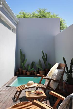 A private courtyard with a small plunge pool includes a space offers a serene setting for quiet time.