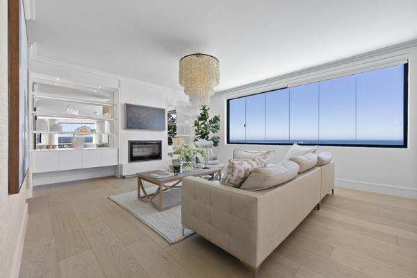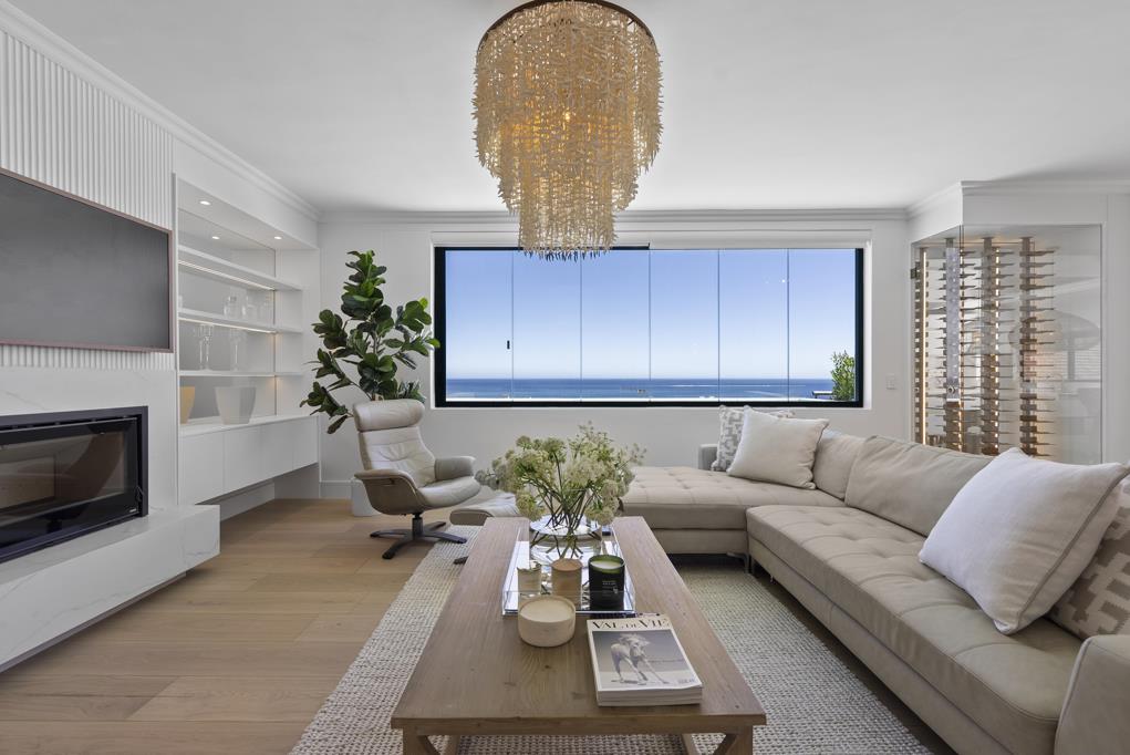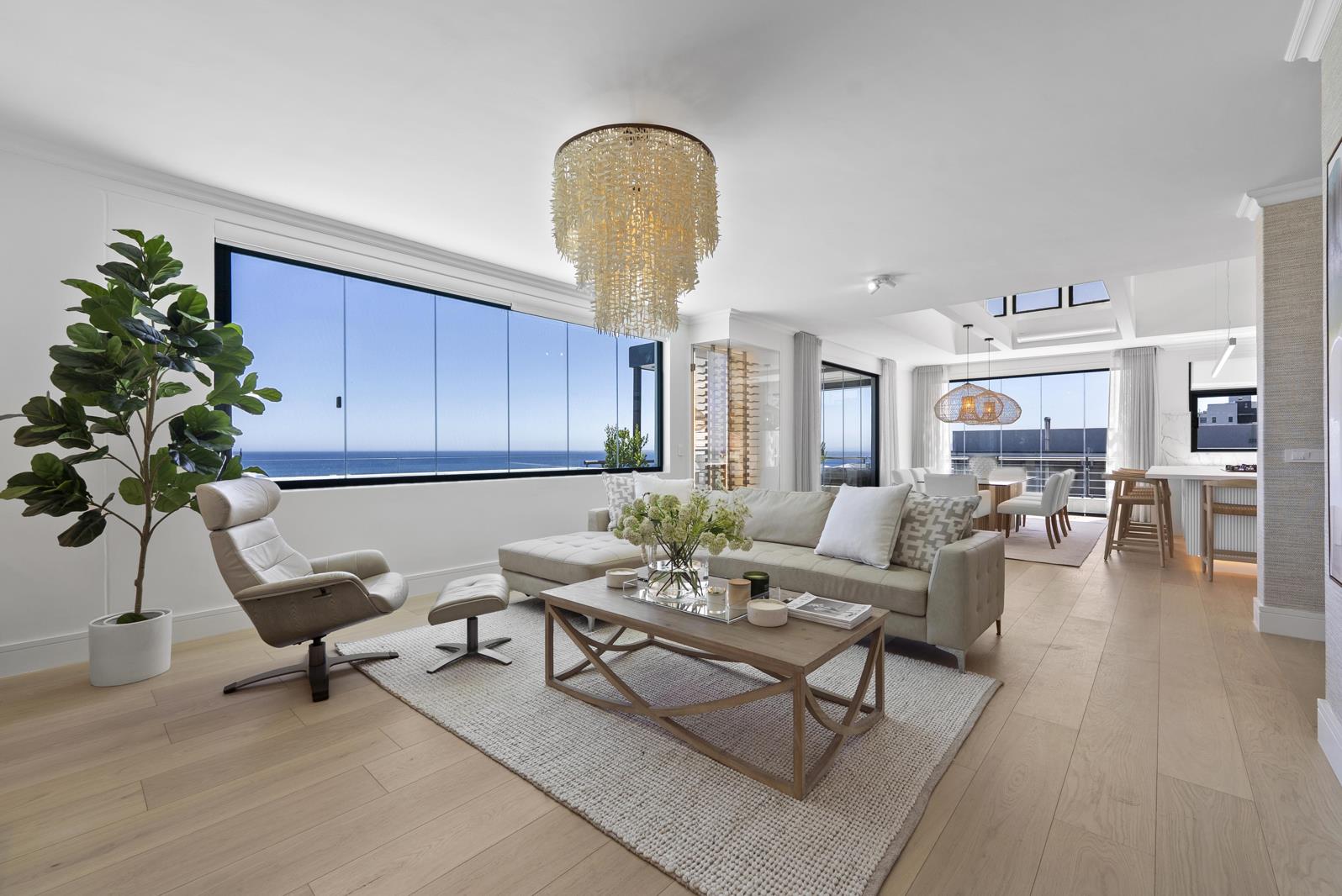 The apartment features 3 bedrooms, 3 bathrooms, stylish living and dining areas that flow out onto an expansive wraparound balcony with a 360-degree view of the Atlantic Seaboard and Lionshead Mountain. The property also features a private pool, three secure parking bays, and 24-hour security in the block.