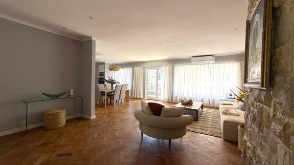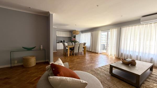 Ideally positioned in the heart of Sea Point, directly opposite the Point Shopping Centre, this fully furnished three-bedroom apartment offers effortless luxury and exceptional convenience.