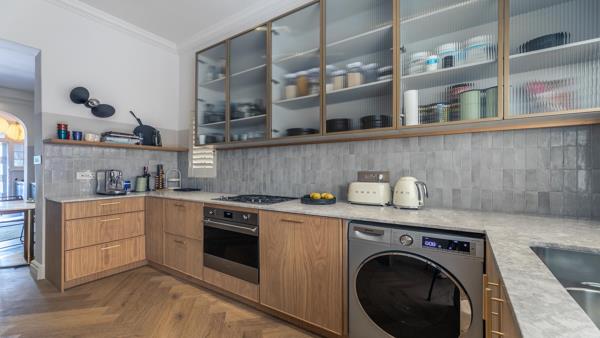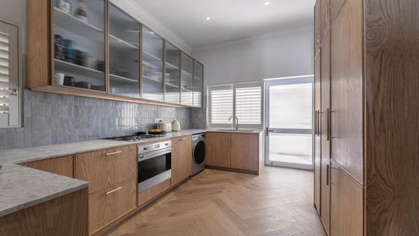 The living and dining area open onto a well-sized contemporary kitchen with high end finishes.