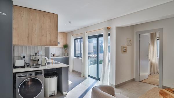 The living and dinning area flow into the beautifully designed kitchen with integrated appliances. There is a juliet balcony. The bedroom has ample cupboard space with ensuite bathroom. This unit feels more like a luxurious hotel suite. A private parking space is included.