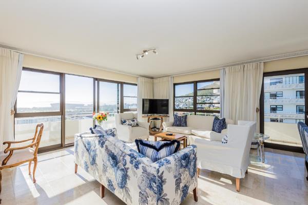 Sought after apartment . Apartment on the 14th floor. Fully furnished 2 Bedroom, 2 bathroom apartment, on Sea Point beach front. Beautiful sea views from the 180 degree balcony. Air-conditioning in the lounge. Rental includes maid and DSTV. Jacuzzi bath in main en suite.