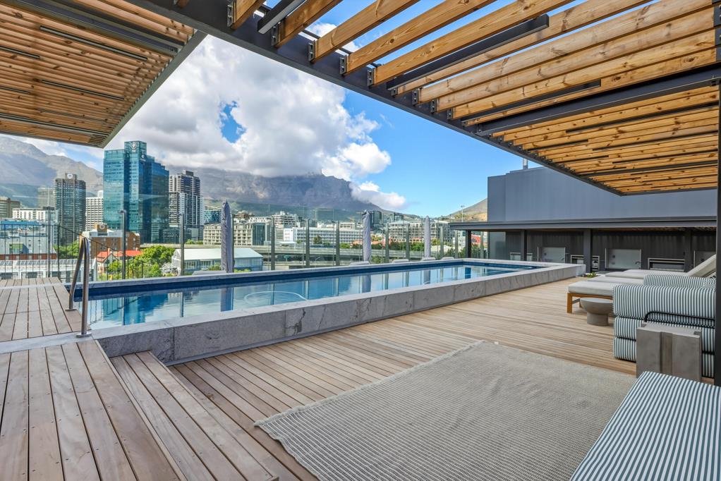 Stunning rooftop pool with braai areas and electric pizza oven