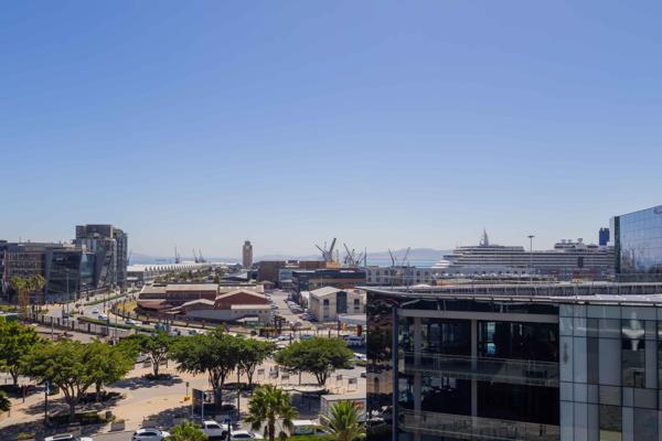 The open-plan kitchen and lounge flow seamlessly onto the balcony, creating an ideal space for both entertaining and everyday living. Expansive windows allow for an abundance of natural light and offer impressive views of Table Mountain, Canal, Harbour and Waterfront.