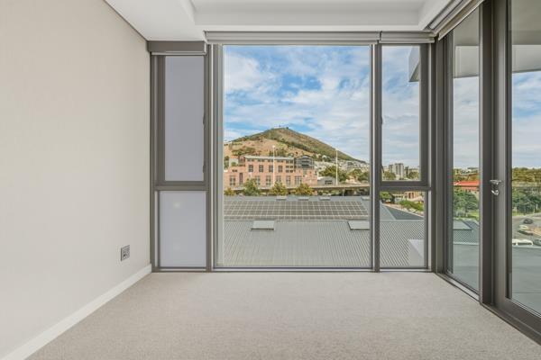 The open-plan kitchen and lounge flow seamlessly onto the balcony, creating an ideal space for both entertaining and everyday living. Expansive windows allow for an abundance of natural light and offer impressive views of the Table Mountains and Singla Hill. South-West facing.