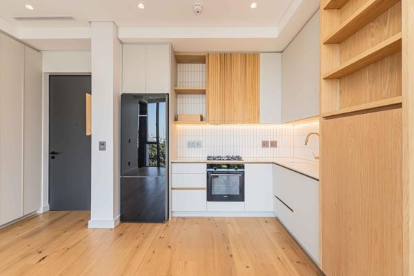 The open-plan kitchen and lounge open onto a private balcony. The large bedroom offers built-in cupboards, remote controlled blinds while the bathroom features a walk-in shower, single basin, and toilet.