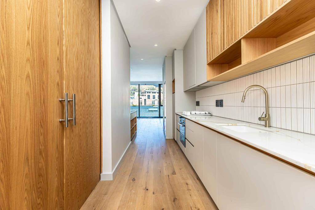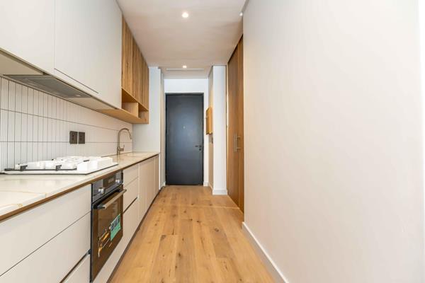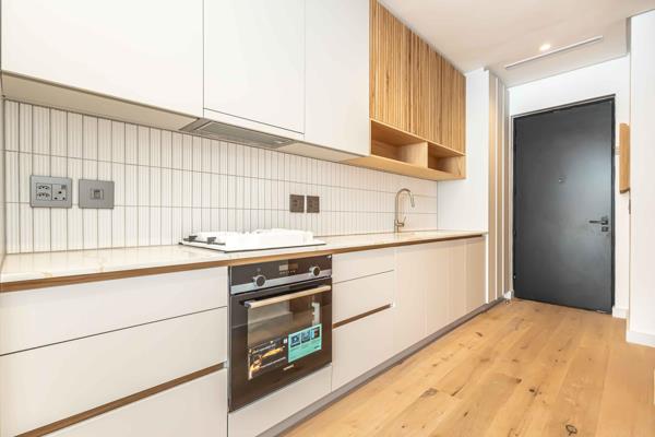 The open-plan kitchen and lounge open onto a private balcony. Table Mountain Views. The bedroom offers built-in cupboards, remote controlled blinds, while the bathroom features a walk-in shower, single basin, and toilet.