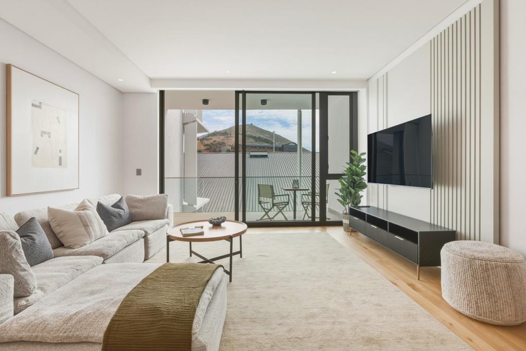 The apartment comes fully furnished. Situated on the 2nd floor, the apartment is west-facing and enjoys views of Signal Hill and Lions Head. Wooden floors flow throughout the space, complemented by air conditioning and premium fixtures. The open-plan kitchen and lounge open seamlessly onto a private balcony. The lounge area includes a built-in studywork desk, ideal for working from home. The modern kitchen is fully equipped with a dishwasher, a washing machinedryer combo, a built-in gas hob, and an electric oven. The bedroom features built-in cupboards and remote-controlled blinds, while the bathroom includes a walk-in shower, a single basin, and a toilet.