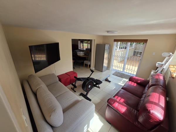 - TV Family room on the bottom floor with sliding doors to the under covered braai and entertainment area.