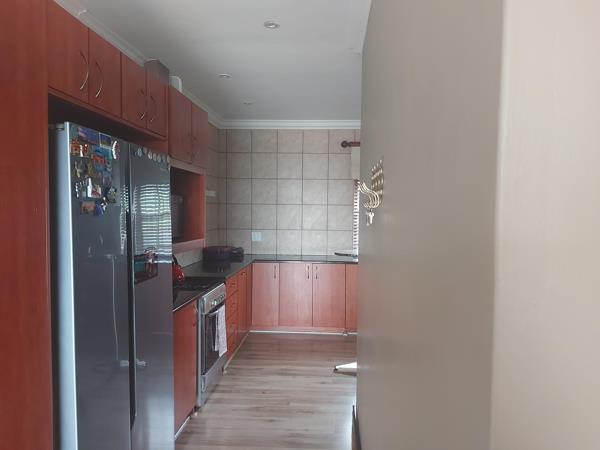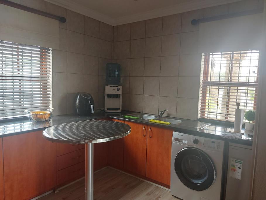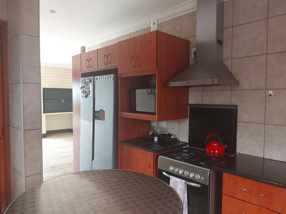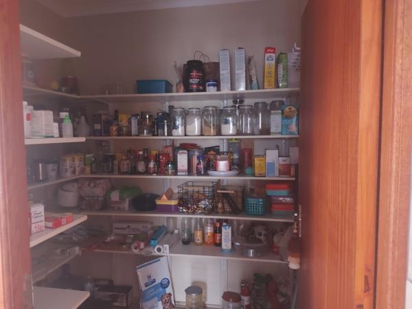 Kitchen with a lot of cupboard space, gas stove and scullery.