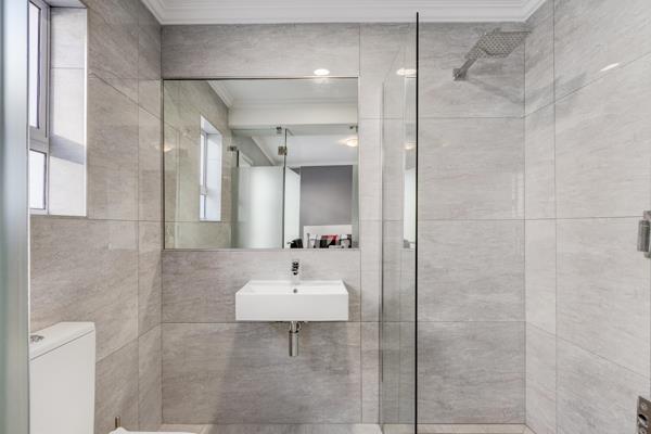 This property offers 3 bedrooms with 3 modern bathrooms, an entrance hall, open-plan kitchen with sleek, modern finishes, dining room and lounge with sliding doors onto a private veranda and garden.