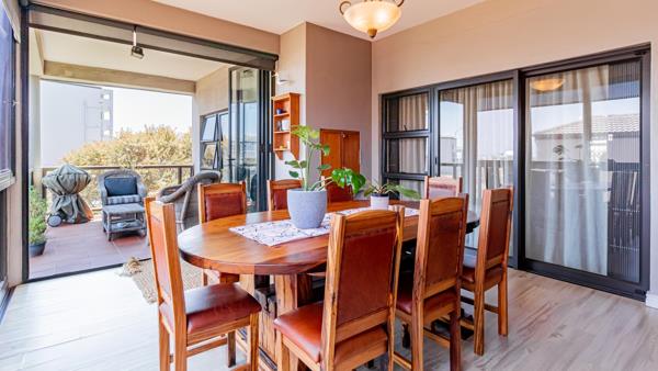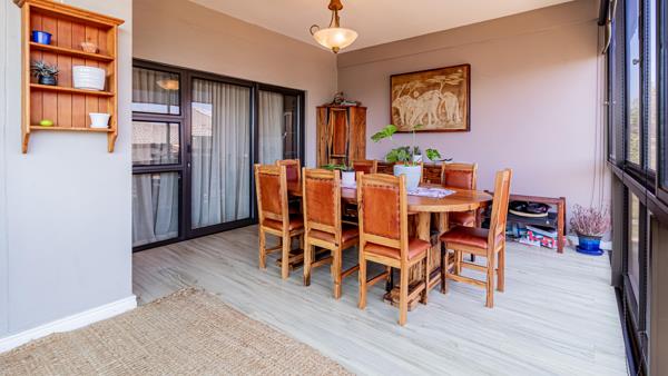This beautifully laid-out home offers a generous, fully fitted kitchen with ample cupboard space, perfect for easy everyday living or entertaining. The expansive living area flows seamlessly through sliding doors into an enclosed braai room, creating the ideal all-weather entertainment space. From here, step out onto a sun-drenched, north-facing balconyperfect for relaxing and enjoying the sea air.