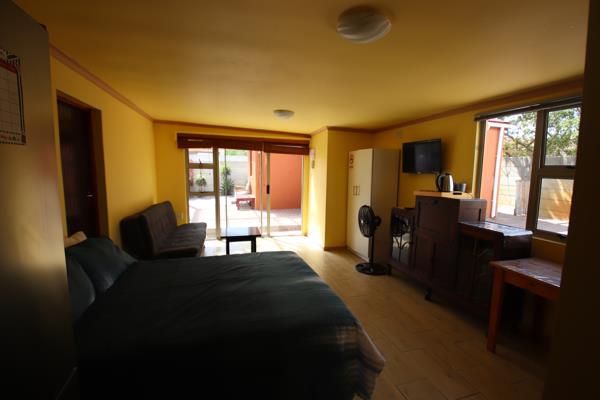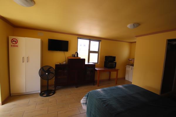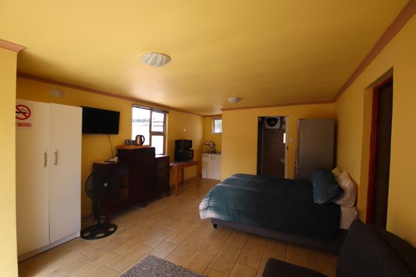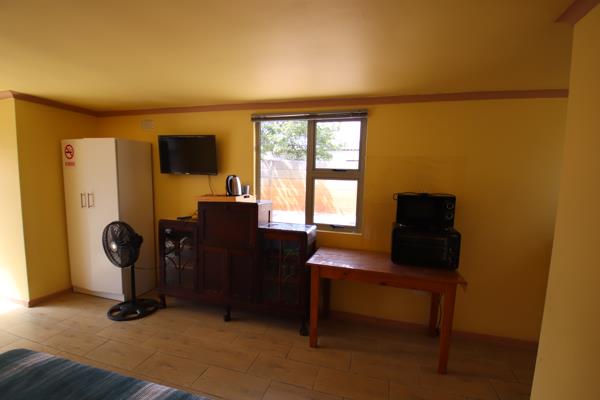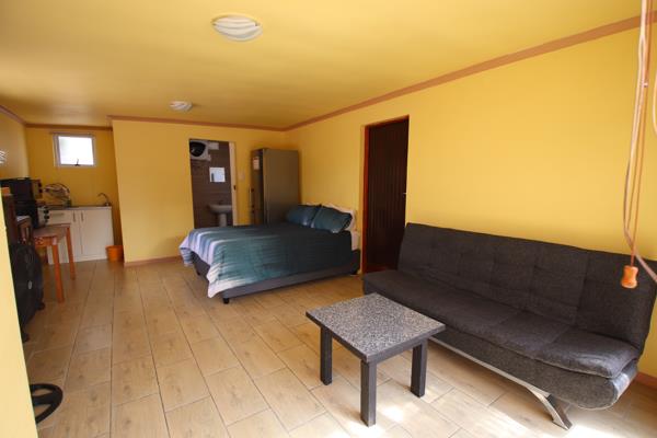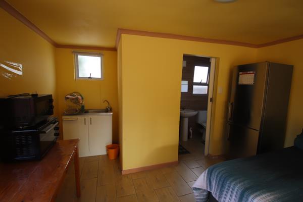 Garden cottage open plan lounge bedroom and kitchenette. En-suite bathroom with shower and toilet. Small kitchenette As this is a garden cottage , pool to share.