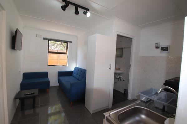 Furnished two bedroom garden cottage. Bathroom with shower and toilet. Open plan lounge and kitchen. Swimming pool to share. Parking outside in street