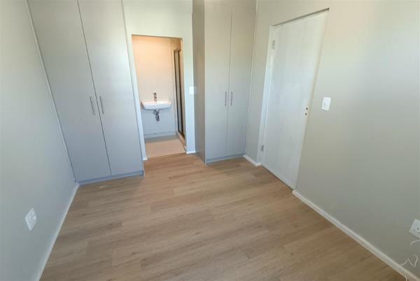 The unit has an open-plan layout, with the living area flowing into a modern kitchen. Bedrooms are well-sized with built-in cupboards, and large windows bring in good natural light throughout.