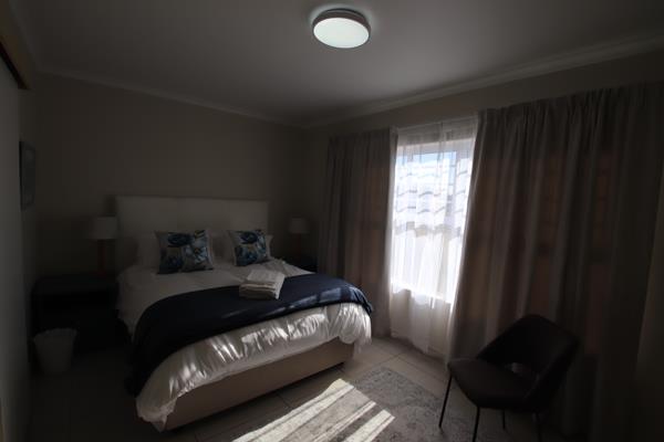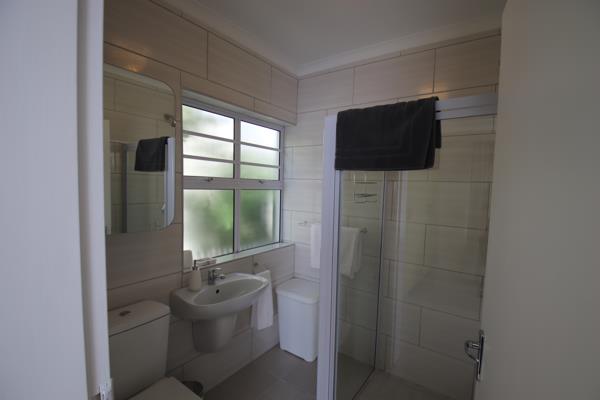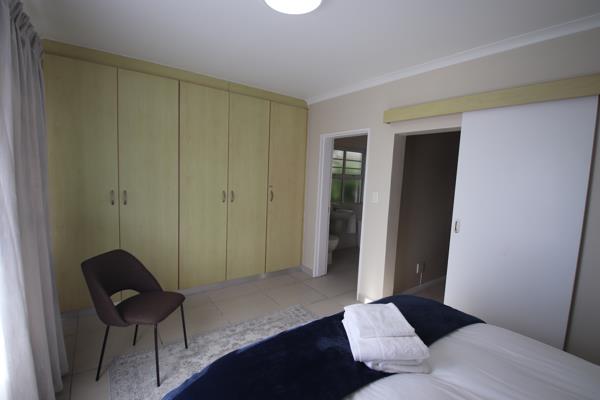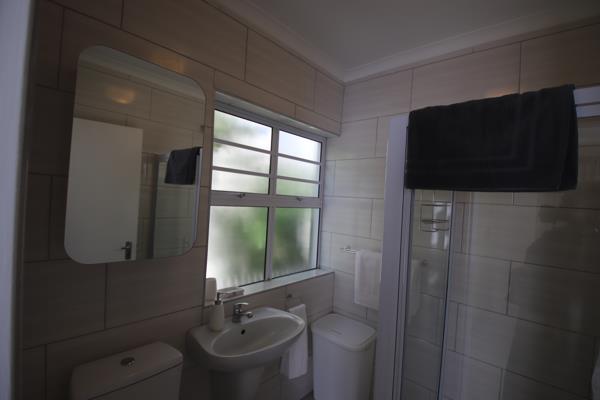 Safe and secure complex offering a 1 bedroom 1 bathroom ground floor apartment. Bedroom Queen size bed, build in cupboards with en-suite bathroom. Shower, basin and toilet.