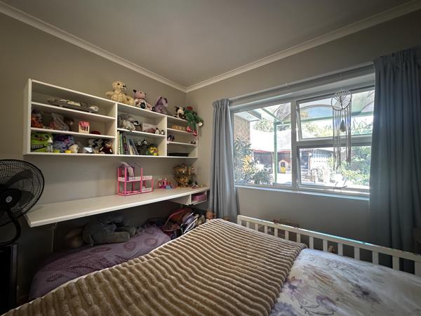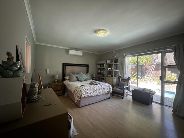 The home flows effortlessly into the living and entertainment areas, leading out to a well-sized garden featuring a swimming pool and a lapa with a built-in braai, perfect for year-round entertaining.