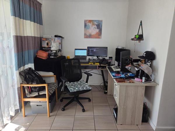 The open living area flows seamlessly into a versatile space that can be used as a dining area or home office.