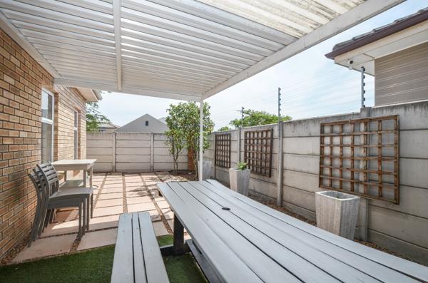 The braai room leads to an undercover seating area and a neat, low-maintenance garden.