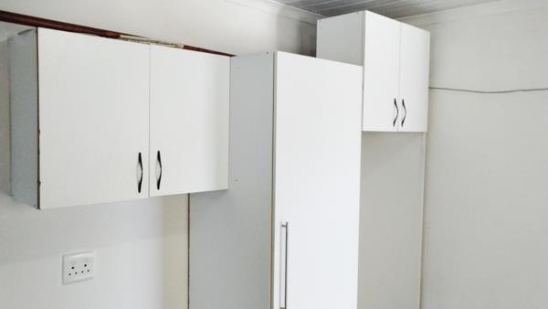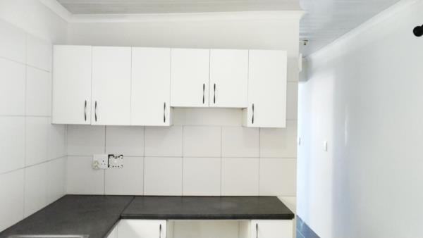 Neat and modern one-bedroom flat available in Gleemore. The unit features an open-plan kitchen fitted with a gas hob, extractor fan, and built-in cupboards.