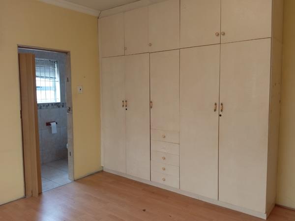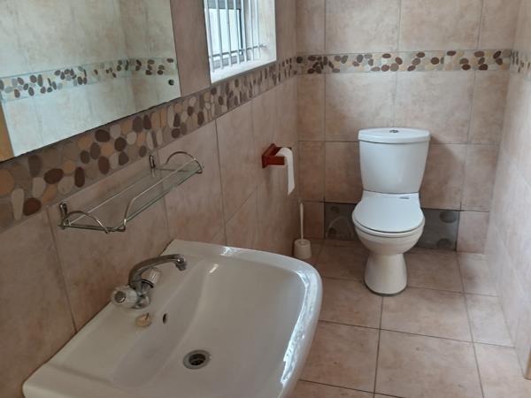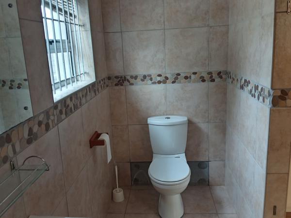 A big spacious bedroom that is finished off with built in cupboards. The bathroom that is adjacent to the bedroom has a shower, hand basin and toilet.