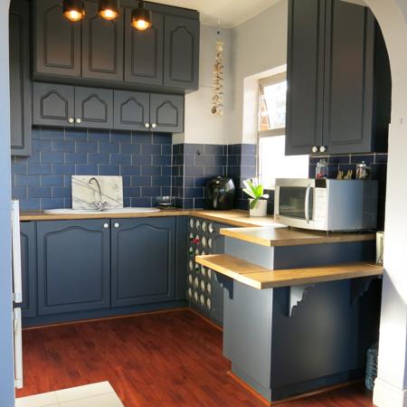 Entryway leads into an Open plan lounge & Kitchen with double sink.