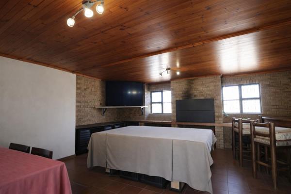 The main house features three spacious bedrooms, all fitted with built-in cupboards, providing ample storage. The living space includes a welcoming lounge and dining area, ideal for both everyday living and entertaining. A dedicated entertainment area with a built-in braai adds to the homes appeal, perfect for hosting gatherings.